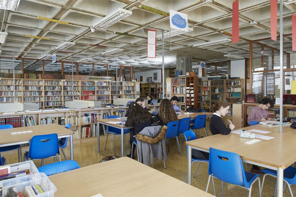 - Biblioteca escolar renovada, con zonas de lectura y estudio independiente.